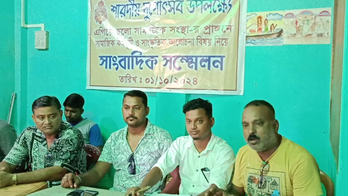 প্রতিনিধি, উদয়পুর : শারদীয় ও দুর্গোৎসব উপলক্ষে উদয়পুরে এগিয়ে চলো সামাজিক সংস্থা-র প্রাঙ্গনে সামাজিক কর্মসূচি ও সাংস্কৃতিক আলোচনা বিষয় নিয়ে সাংবাদিক সম্মেলন করেন ক্লাবের সদস্যরা । মঙ্গলবার দুপুরে এগিয়ে চলো সামাজিক সংস্থা-র পূজা কমিটির সভাপতি প্রশান্ত রায় জানান অন্যান্য বছরের ন্যায় এই বছরও সার্বজনীন দুর্গা উৎসব পালন করা হবে পোল্ট্রি রোড এলাকায় । কিন্তু এই বছর ভয়াবহ বন্যার কারণে কোন ধরনের বড় বাজেটের পূজো করা হচ্ছে না। তার কারণ বন্যার ফলে এলাকায় ভীষণ ক্ষতির শিকার হয়েছে। এলাকাবাসীদের সাহায্যতে যে চাঁদা তোলা হবে তার থেকে রাজ্যের মুখ্যমন্ত্রীর ত্রাণ তহবিলে আর্থিকভাবে সাহায্য করা হবে বলে জানান ক্লাব কর্তৃপক্ষ । সেই সাথে পূজোর তিনদিন থাকবে নানা সংস্কৃতি অনুষ্ঠান। এছাড়া আগামী ৩ অক্টোবর অনুষ্ঠিত হবে রক্তদান শিবির । এমনটাই জানান ক্লাব সম্পাদক বিপ্লব দাস।