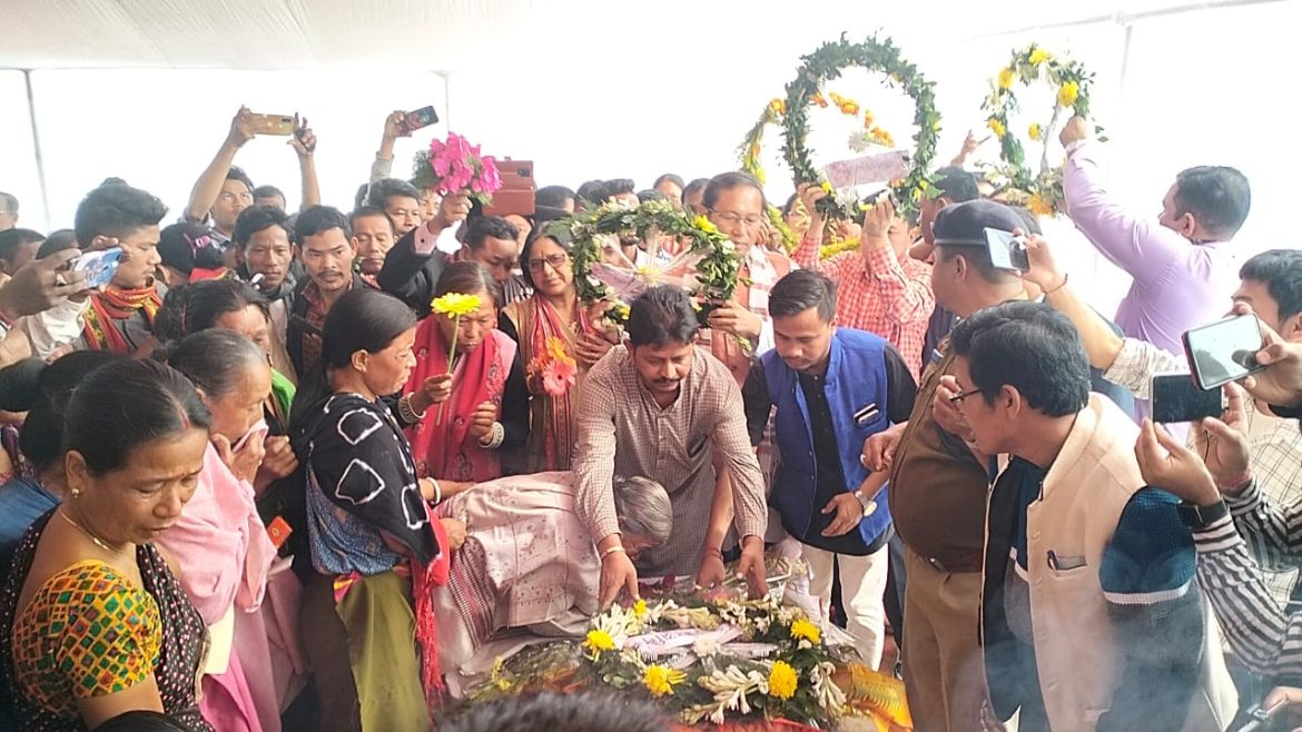 নিজস্ব প্রতিনিধি কল্যাণপুর_কল্যাণপুরের উত্তরমহারানী তে পুরনো রাষ্ট্রীয় মর্যাদায় প্রয়াত মন্ত্রী এন সি দেববর্মার শেষকৃত্য সম্পন্ন হয়। চোখের জলে চির বিদায় জানালো রাজস্ব মন্ত্রী কে কল্যাণপুরে। প্রয়াত হন রাজ্যের রাজস্ব ও বনদপ্তরের মন্ত্রী নরেন্দ্র চন্দ্র দেববর্মা। উনার পৈত্রিক ভিটা কল্যাণপুরের উত্তর মহারানীপুরের নকশিরাই পাড়াতে সোমবার চোখের জলে চির বিদায় জানানো হয়। উনার নিতুর দেহ আগরতলা থেকে কল্যাণপুর এর বাড়িতে আসতেই কান্নায় ভেঙ্গে পড়েন পরিবার-পরিজনরা। বাড়িতে এক ঝলক উনাকে দেখতে ভিড় জমান এলাকার সাধারণ অংশের মানুষজনরা। মরদেহে ফুল মালা দিয়ে শ্রদ্ধা জ্ঞাপন করলেন, ত্রিপুরা পুলিশের আইজি সৌমিত্র ধর জেলার পুলিশ সুপার রতিরঞ্জন দেবনাথ,খোয়াই জেলার জেলাশাসক ডি কে চাকমা, তেলিয়ামুড়া মহকুমা পুলিশ আধিকারিক প্রশোন কান্তি ত্রিপুরা,তেলিয়ামুড়া মহকুমা মহকুমা শাসক অভিজিৎ চক্রবর্তী, কল্যাণপুরের বিধায়ক পিনাকী দাস চৌধুরী, কৃষ্ণপুরের বিধায়ক অতুল দেববর্মা, ইএম কমল কলই, ডিস্ট্রিক্ট ফরেস্ট অফিসার, টিএসআর ১২,১০ এবং ৬ নং বেটেলিয়ানের কমান্ডেন্ট, বনদপ্তরের আধিকারিক, খোয়াই জেলা কংগ্রেসের সভাপতি শব্দ কুমার জমাতিয়া সহ অন্যান্য বিশিষ্ট জনেরা। পূর্ণ রাষ্ট্রীয় মর্যাদায় প্রয়াত রাজ্যের মন্ত্রী এন সি দেববর্মার কে শেষকৃত্য সম্পন্ন হয় উনার পৈতৃক ভিটা উত্তর মহারানীপুরের নকশী রাই পাড়াতে। শেষে উনার বাড়ির পাশেই শেষকৃত্যে ঢল নামে সাধারণ মানুষের।