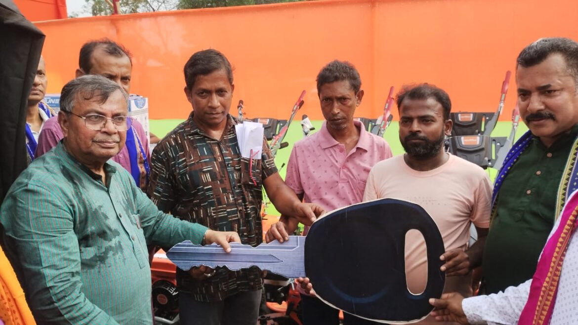 - প্রতিনিধি মোহনপুর:- বামুটিয়ার তেবাড়িয়াতে নবনির্মিত বীজ প্রক্রিয়াকরণ কেন্দ্রের আনুষ্ঠানিক উদ্বোধন হলো বুধবার। কৃষি ও কৃষক কল্যাণ দপ্তরের মন্ত্রী রতন লাল নাথের হাত ধরে উদ্বোধন হয়েছে এই বীজ প্রক্রিয়াকরণ কেন্দ্রের। পাশাপাশি এলাকার কৃষকদের মধ্যে বিতরণ করা হয়েছে বিভিন্ন কৃষি যন্ত্রাংশ। বামুটিয়া এলাকাতে বিশেষ করে ধানের বীজ প্রক্রিয়াকরণের জন্য স্থাপন করা হয়েছে একটি ইউনিট। তেবাড়িয়া এলাকায় নির্মাণ করা হয়েছে এই প্রক্রিয়াকরণ কেন্দ্র। ফিতা কেটে এবং ফলক উন্মোচন করে এই প্রকল্পের আনুষ্ঠানিক সূচনা করা হয়েছে বুধবার। এছাড়াও এদিন এলাকার কৃষকদের মিনি ট্রাক্টর, পাওয়ার ওইডার, ব্রুশকাটার, স্প্রে মেশিন এবং অন্যান্য কৃষি যন্ত্রাংশ বিতরণ করা হয়েছে। কৃষকদের হাতে আনুষ্ঠানিকভাবে এই সামগ্রিক গুলো তুলে দিয়েছেন রাজ্যের কৃষি ও কৃষক কল্যাণ দপ্তরের মন্ত্রী রতন লাল নাথ।