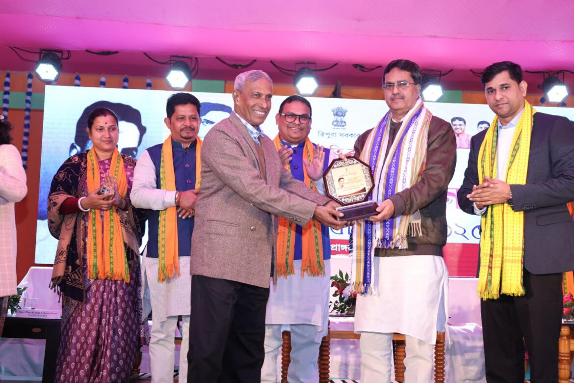 প্রতিনিধি কৈলাসহর:-কৃষি বিজ্ঞান কেন্দ্র ঊনকোটি এর উদ্যান বিভাগের বিশেষজ্ঞ ডঃ রতন দাস দীর্ঘদিন ধরে উদ্যান বিভাগে গবেষণা,নতুন প্রযুক্তির সন্ধান,কৃষি সম্প্রসারণের উপর কাজ করে চলেছেন।ওনার প্রচেষ্টা কৃষক সমাজে বিভিন্ন প্রযুক্তিগত সমস্যার সমাধান করতে সক্ষম হয়েছে এবং কৃষক মহলে সারা জাগিয়েছেন।ভারতীয় কৃষি অনুসন্ধান পরিষদ (আই. সি.এ.আর.) এর সহযোগিতায় বিভিন্ন সময় উন্নত মানের বীজ এবং অন্যান্য সামগ্রী কৃষকদের হাতে তুলে দিতে সচেষ্ট হয়েছেন।বিজ্ঞান এবং কৃষক সমাজের প্রতি উনার অবদান এবং নিরলস চেষ্টাকে মাথায় রেখে ত্রিপুরা সরকার ২রা জানুয়ারি ২০২৫ ইং ডক্টর রতন দাসকে অদ্বৈত মল্লবর্মন স্মারক সম্মান এ্যাওয়ার্ড -২০০৫ ভূষিত করেন,যা ত্রিপুরার মুখ্যমন্ত্রী প্রফেসর ডঃ মানিক সাহা ওনার হাতে তুলে দিয়েছেন।উক্ত অনুষ্ঠানে উপস্থিত ছিলেন প্রাণিসম্পদ বিকাশ দপ্তর, মৎস্য এবং তফশিল জাতি কল্যাণ দপ্তরের মন্ত্রী সুধাংশু দাস ও বিধায়ক পিনাকী দাস চৌধুরী সহ অন্যান্যরা।
