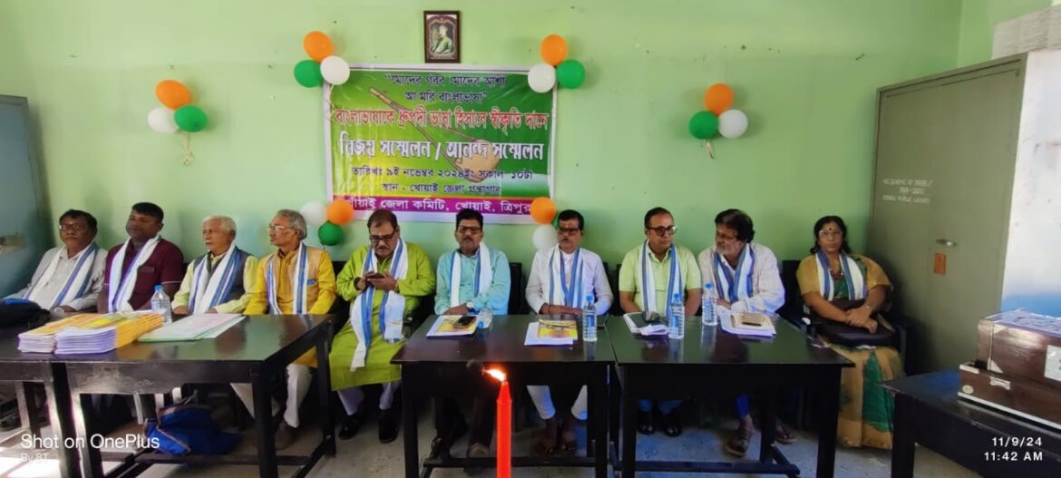 বাংলা ভাষাকে ধ্রুপদী ভাষা হিসেবে স্বীকৃতি প্রদান উপলক্ষে। শনিবার খোয়াই জেলা গ্রন্থাগারে বাংলা আকাডেমি খোয়াই জেলা কমিটির উদ্যোগে বিজয়া সম্মেলনী অনুষ্ঠিত হয়। প্রথমেই বাংলাদেশের জাতীয় সংগীত পরিবর্তনের লক্ষ্যে বাংলাদেশের বর্তমান অন্তর্বর্তী সরকার যে সিদ্ধান্ত নিয়েছে তার প্রতিবাদ জানানোহয় । এদিনের সভায় বক্তব্য রাখতে গিয়ে বিশিষ্ট কবি সাহিত্যিক মনোরঞ্জন গোপ বলেন, বর্তমান প্রজন্মে বাংলা ভাষার প্রবণতা অনেকটাই কমে যাচ্ছে। সভ্যতার বিকাশের সাথে সাথে ইংরেজি ভাষাকে প্রাধান্য দেওয়া হচ্ছে। কিন্তু বাংলা ভাষা বাঙালি জাতির মাতৃভাষা, আর এই মাতৃভাষাকে যথাযোগ্য সম্মান প্রদানের লক্ষ্যে আমাদের প্রত্যেককে এগিয়ে আসতে হবে । তাছাড়া বক্তব্য রাখতে গিয়ে পুরো পরিষদের চেয়ারপারসন দেবাশীষ নাথ শর্মা রাজ্য সরকার এবং কেন্দ্রীয় সরকারকে বাংলা ভাষাকে ধ্রুপদী রূপে গ্রহণ করার জন্য ধন্যবাদ জ্ঞাপন করেন।