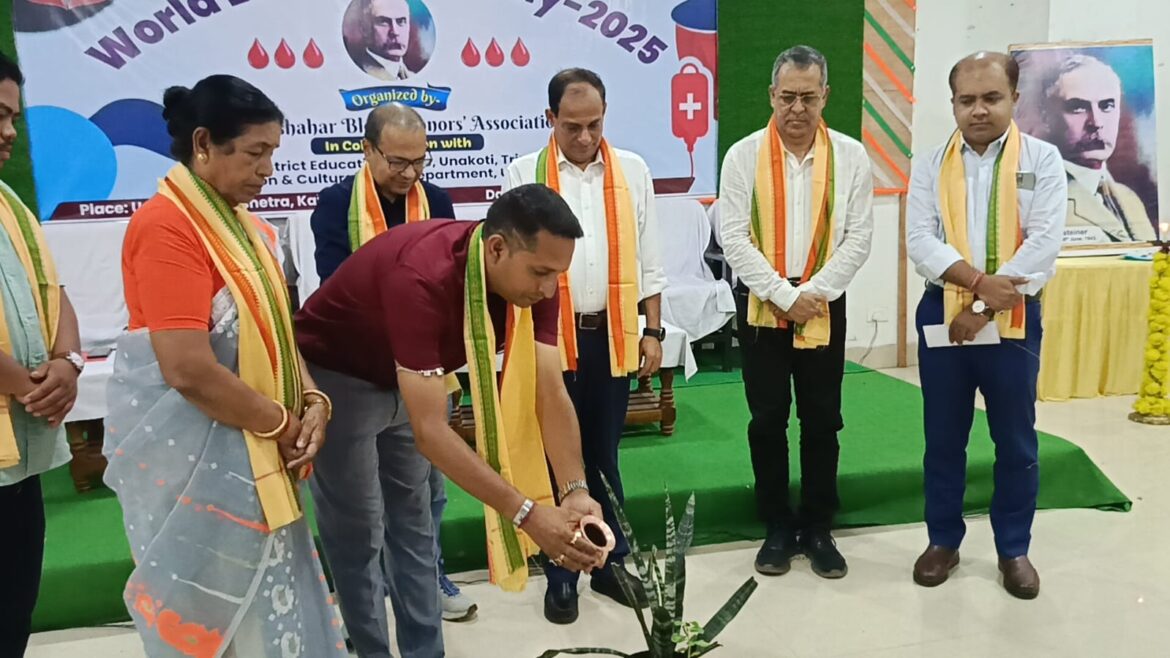 প্রতিনিধি কৈলাসহর:-বিশ্ব রক্তদাতা দিবস ২০২৫ যথাযোগ্য মর্যাদায় পালিত হল কৈলাসহর ঊনকোটি কলাক্ষেত্রে।কৈলাসহর ব্লাড ডোনার্স এসোসিয়েশনের উদ্যোগে আয়োজিত অনুষ্ঠানকে কেন্দ্র করে জুড়ে ছিল সম্মাননা প্রদান, সেমিনার,রক্তদান শিবির এবং নানা সচেতনতামূলক কর্মসূচি।অনুষ্ঠানের সূচনা হয় বিশ্বখ্যাত রক্তের গ্রুপ আবিষ্কারক কার্ল ল্যান্ডস্টেইনারের প্রতিকৃতিতে পুষ্পার্ঘ্য অর্পণ এবং একটি চারা গাছে জল সিঞ্চনের মধ্য দিয়ে।এরপর আমেদাবাদে সদ্য ঘটে যাওয়া ভয়াবহ বিমান দুর্ঘটনায় প্রাণ হারানো ২৪১ জন যাত্রীর প্রতি এক মিনিট নীরবতা পালন করা হয়।অনুষ্ঠানের সূচনা সঙ্গীত পরিবেশন করেন নির্ঘোষ নিক্বণ এর শিল্পীবৃন্দ।স্বাগত ভাষণ দেন ব্লাড ডোনার্স এসোসিয়েশনের সম্পাদক শুভাশিস চৌধুরী।অনুষ্ঠানের সভাপতিত্ব করেন এসোসিয়েশনের সভাপতি অনুপম পাল।অনুষ্ঠানে উপস্থিত ছিলেন কৈলাসহর পুর পরিষদের চেয়ারপারসন চপলা দেবরায়,ঊনকোটি জেলার জেলাশাসক ডঃ তমাল মজুমদার,মহকুমা শাসক প্রদীপ সরকার,জেলা শিক্ষা আধিকারিক প্রশান্ত কিলিকদার,মহকুমা তথ্য ও সংস্কৃতি কার্যালয়ের আধিকারিক সুকান্ত মলসই, ডঃ শঙ্খশুভ্র দেবনাথ,ভাইস চেয়ারপার্সন নিতিশ দে, বিশিষ্ট সমাজসেবী প্রীতম ঘোষ সহ জেলার একাধিক বিশিষ্ট ব্যক্তিবর্গ।রক্তদানের গুরুত্ব ও প্রয়োজনীয়তা সম্পর্কে বক্তব্য রাখেন ডঃ শঙ্খশুভ্র দেবনাথ। পাশাপাশি,ছাত্র-ছাত্রীদের অংশগ্রহণে অনুষ্ঠিত হয় এক তথ্যবহুল সেমিনার, যেখানে “চাইল্ড ম্যারেজ” ও “টিনেজ প্রেগন্যান্সি” বিষয়ে আলোচনা করেন ডঃ অয়ন রায়।এছাড়াও ছাত্রদের মধ্যে একটি কুইজ প্রতিযোগিতাও অনুষ্ঠিত হয়।এই দিনে ধারাবাহিকভাবে রক্তদান করে সমাজে অনন্য দৃষ্টান্ত স্থাপন করায় পাঁচজন মহিলা রক্তদাতাকে বিশেষ সম্মাননা প্রদান করা হয়।সম্মান প্রাপ্তরা হলেন শাশ্বতী চক্রবর্তী,পৌষালী ভট্টাচার্য, মহামায়া দাস,সংঘমিত্রা দে এবং সুপর্ণা চক্রবর্তী। এছাড়াও জেলার তেরোটি ক্লাবকে রক্তদানের ক্ষেত্রে তাদের সক্রিয় ভূমিকার জন্য সংবর্ধনা জানানো হয়।রক্তদান শিবিরে মোট ২২ জন রক্তদাতা স্বেচ্ছায় রক্তদান করেন,যা অনুষ্ঠানটির মূল সার্থকতাকে প্রমাণ করে।অনুষ্ঠানের সঞ্চালনা করেন বাচিক শিল্পী সুকান্ত চক্রবর্তী।পুরো অনুষ্ঠানের সফল বাস্তবায়নে বিশেষ ভূমিকা পালন করে ঊনকোটি জেলার বিদ্যালয় শিক্ষা দপ্তর এবং তথ্য ও সংস্কৃতি দপ্তর।সার্বিকভাবে, কৈলাসহর ব্লাড ডোনার্স এসোসিয়েশনের এই বর্ণাঢ্য আয়োজন রক্তদানের প্রতি জনসচেতনতা গড়ে তোলার একটি উজ্জ্বল দৃষ্টান্ত হয়ে রইল এমনটাই মত শুভবুদ্ধি সম্পন্ন মানুষের।এর পূর্বেও কৈলাসহর ব্লাড ডোনার্স এসোসিয়েশনের রক্তদানের প্রয়াস সফলতার শীর্ষে রয়েছে।