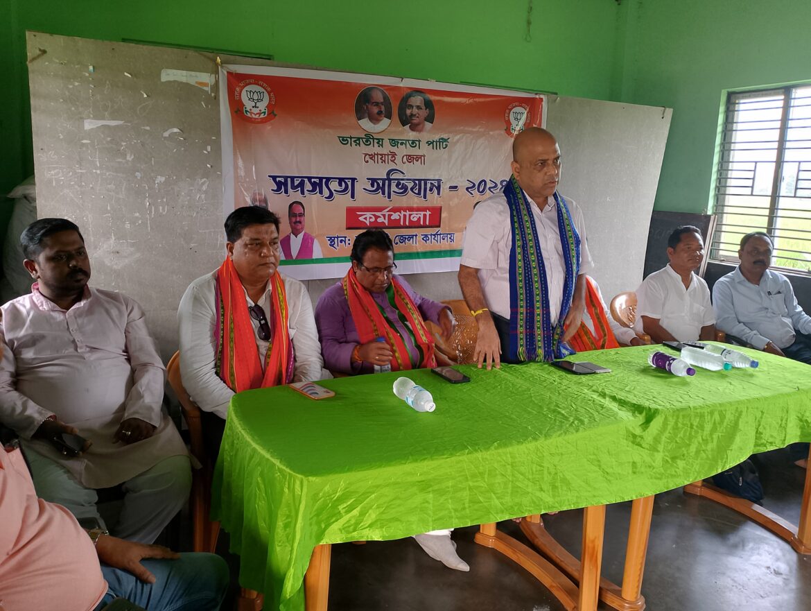 সংবাদ প্রতিনিধি খোয়াই। বিজেপি দলের বর্তমান লক্ষ্য সদস্যপদ নবী করন।ওয়ান পয়েন্ট কর্মসূচি নিয়ে পাহাড়,সমতলে ভারতীয় জনতা পার্টির কার্যকর্তারা। আগামী ৩১ শে অক্টোবর পর্যন্ত এ রাজ্যে সদস্যতা অভিযান পর্ব চলবে। আজ এই উপলক্ষে রাজ্য প্রভারী প্রাক্তন সংসদ ডক্টর রাজদীপ রায় আশারামবাড়ী ও রামচন্দ্র ঘাট মন্ডল সফর করেন এবং বৈঠক এ যোগদেন। বেলা বারোটায় আশারামবাড়ি বিধানসভার মন্ডল কার্যালয়ে মন্ডল সভাপতি প্রদীপ দেববর্মাকে সভাপতিত্ব করে বৈঠক শুরু হয়। বৈঠকে মন্ডলের বুথ কমিটি, শক্তি প্রমুখ, নির্বাচিত সদস্য সদস্যা,মন্ডল জেলা ও রাজ্য কমিটির কার্যকর্তাগণ উপস্থিত ছিলেন।