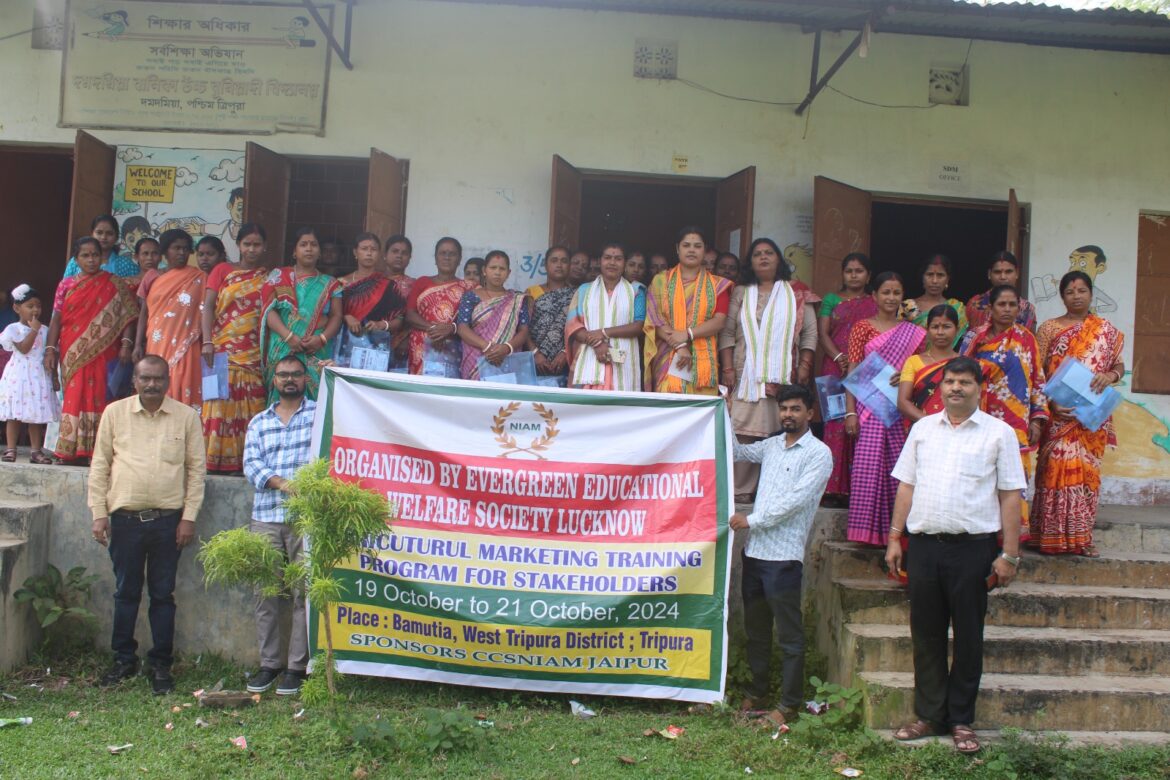 প্রতিনিধি মোহনপুর :- কৃষকদের উৎপাদিত ফসল বাজারজাতকরণের উপর এক প্রশিক্ষণ কর্মসূচি অনুষ্ঠিত হয়েছে দেবেন্দ্র নগর গ্রাম পঞ্চায়েত এলাকার দমদমিয়াতে। রবিবার এলাকার কৃষকদের এই প্রশিক্ষণ প্রদান করা হয়েছে। এতে মহিলা এবং পুরুষ কৃষকরা অংশগ্রহণ করেছেন। মোট ৪৫ জনকে দেওয়া হয়েছে এই প্রশিক্ষণ। এভারগ্রীন এডুকেশনাল ওয়েলফেয়ার সোসাইটির উদ্যোগে এই প্রশিক্ষণ কর্মসূচি অনুষ্ঠিত হয়েছে। এই প্রশিক্ষণ কর্মসূচির মাধ্যমে কৃষকরা ভারত সরকারের ই-নাম নামক প্ল্যাটফর্ম ব্যবহার করে কিভাবে তাদের উৎপাদিত সামগ্রী গোটা ভারতবর্ষে বাজারজাত করতে পারে তার ওপর আলোচনা করা হয়েছে। এই প্রশিক্ষণ কর্মসূচিতে উপস্থিত ছিলেন দেবেন্দ্র নগর গ্রাম পঞ্চায়েতের প্রধান পূজা মালাকার, ডঃ এ ডি উপাধ্যায়, ডঃ অশোক উপাধ্যায় সহ অন্যান্যরা।