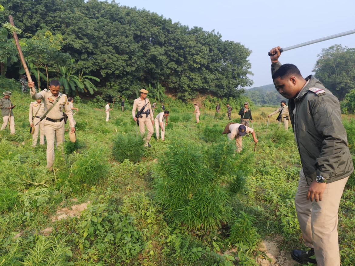 - দক্ষিণের বিলোনিয়া মহকুমার রাজনগর ব্লক একপ্রকার গাঁজা চাষে রমরমা হয়ে উঠেছে। খাস হোক সংরক্ষিত বনভুমি হোক আর জোত ভুমি হোক মানুষ এখন গাঁজা চাষের দিকে বেশি ধাবিত হয়ে উঠেছে। অর্থের মুনাফার লোভে কৃষি ফলন ছেড়ে দিয়ে চাষ করছে গাঁজা। রাম সরকার কৃষির উন্নয়ন সহ কৃষকদের জন্য বিভিন্ন প্রকল্প ঘোষণা করলেও কৃষি উৎপাদনে ততটা উৎসাহিত করতে পারছে না, যতটা গাঁজা চাষে উৎসাহ দেখাচ্ছে। যার ফলে গাঁজা গাছে ছেয়ে আছে দক্ষিণের রাজনগর । সুত্রের খবর, এই গাঁজা চাষে শাসক দলের চুনোপুটি নেতা থেকে শুরু করে কিছু বড়ো মাপের নেতারাও জড়িয়ে পরেছে । পুলিশ প্রশাসন বার বার অভিযান চালিয়ে গাঁজা বাগান ধ্বংস করে শেষ করতে পারছে না। আবারো রাজনগর পিআর বাড়ি থানার অন্তর্গত মোনাই পাথর, হেতালিয়া, ওয়াংচেড়া ও কমলাকান্ত পাড়াতে অভিযান চালিয়ে ধ্বংস করলো গাঁজা বাগান। গোপন সংবাদের ভিত্তিতে রবিবার ভোর চারটা থেকে বিলোনিয়া মহাকুমার পুলিশ আধিকারিক অভিজিৎ দাসের নেতৃত্বে অভিযান চালায় পুলিশ, সিআরপিএফ, আবগারী বিভাগ ও ৪৩ নং সীমান্ত রক্ষী বাহিনী সহ বনদপ্তরের কর্মীরা। এই যৌথ অভিযানে ছিলেন রাজনগর পিআর বাড়ি থানার ওসি রতন রবি দাস , এসি সিআরপিএফ শ্যামলাল মিনা , ইন্সপেক্টর ৪৩ নং বিএসএফ দর্শন সিং, আবগারি বিভাগের ইন্সপেক্টর রাকেশ সিং, তৃষ্ণা অভয়ারণ্যের সহকারী বন্যপ্রাণী ওয়ার্ডেন সুকান্ত সরকার সহ অন্যান্য পুলিশ অফিসার। অভিযানের পর মোনাই পাথর, হেতালিয়া, ওয়াংচেড়া ও কমলাকান্ত পাড়ার গভীর জঙ্গলে সাত একর সংরক্ষিত বনভূমিতে দেখা যায় গাঁজা বাগান। চৌদ্দটি কাভারিং প্লটে ৪৮ হাজার পরিপক্ক গাঁজা গাছ ধ্বংস করা হয়। এই অভিযান শেষ হয় সকাল সাড়ে আটটা নাগাদ। পুলিশ গাঁজা বাগানের মালিকের খোঁজে তদন্ত শুরু করেছে। এই ধরনের অভিযান আগামী দিনেও জারি থাকবে বলে জানান রাজনগর পিআর বাড়ি থানার ওসি রতন রবি দাস।