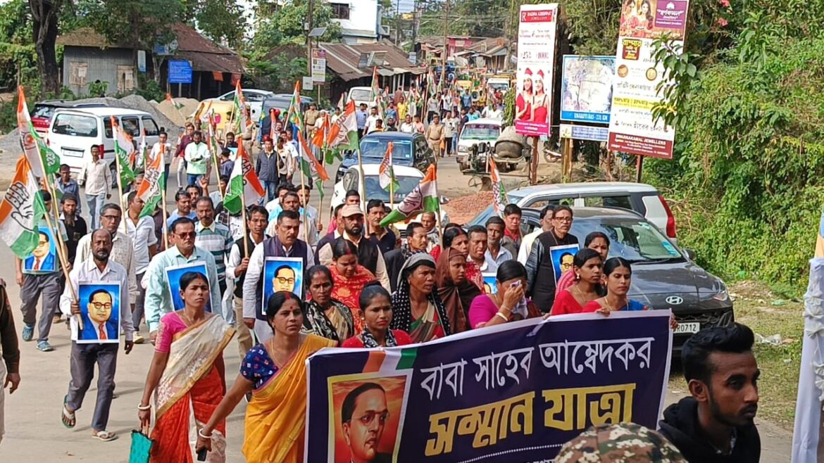 উদয়পুর প্রতিনিধি : উদয়পুর জেলা কংগ্রেস কমিটির উদ্যোগে বাবাসাহেব আম্বেদকরের সম্মান যাত্রা করা হয় মঙ্গলবার দুপুরে। এই দিন দুপুরে উদয়পুর জেলা কংগ্রেস ভবন থেকে কংগ্রেস কর্মীরা এক সম্মান যাত্রা বের করে এদিন। এদিন সম্মান যাত্রাটি দলীয় অফিস থেকে বের হয়ে উদয়পুর শহরের নানা পথ পরিক্রমা করে । পরে মিছিলটি গোমতী জেলাশাসকের অফিসে সামনে গিয়ে এক পথ সভায় মিলিত হয় এবং গোমতী জেলার অতিরিক্ত জেলাশাসক জয়ন্ত ভট্টাচার্য্যর নিকট পাঁচজনের একটি প্রতিনিধি দল ডেপুটেশানে মিলিত হয় জেলা কংগ্রেস সভাপতি টিটন পালের নেতৃত্বে । এদিন ডেপুটেশান শেষে জেলা কংগ্রেসের সভাপতি টিটন পাল বলেন , দেশের সংসদে দাঁড়িয়ে স্বরাষ্ট্রমন্ত্রী অমিত শাহ সংবিধান প্রণেতা ডঃ বি আর আম্বেদকরকে নিয়ে যে মন্তব্য করেছে তার জন্য গোটা দেশের কাছে ক্ষমাপ্রার্থী চাইতে হবে এবং অবিলম্বে যেন পদত্যাগ করা হয় সে বিষয়ে জেলাশাসকের মধ্য দিয়ে দেশের রাষ্ট্রপতির কাছে ডেপুটেশান পত্র পাঠানো হচ্ছে। এই দিনের ডেপুটেশানে জেলা সভাপতি ছাড়াও ছিলেন , ত্রিপুরা প্রদেশ কংগ্রেসের সাধারণ সম্পাদক মিলন কর সহ ব্লক কংগ্রেসের সভাপতি রঞ্জিত দেবনাথ ও অন্যান্য নেতৃত্বরা । এদিনের মিছিলটি ব্যাপক সাড়া ফেলেছে উদয়পুর শহরে।