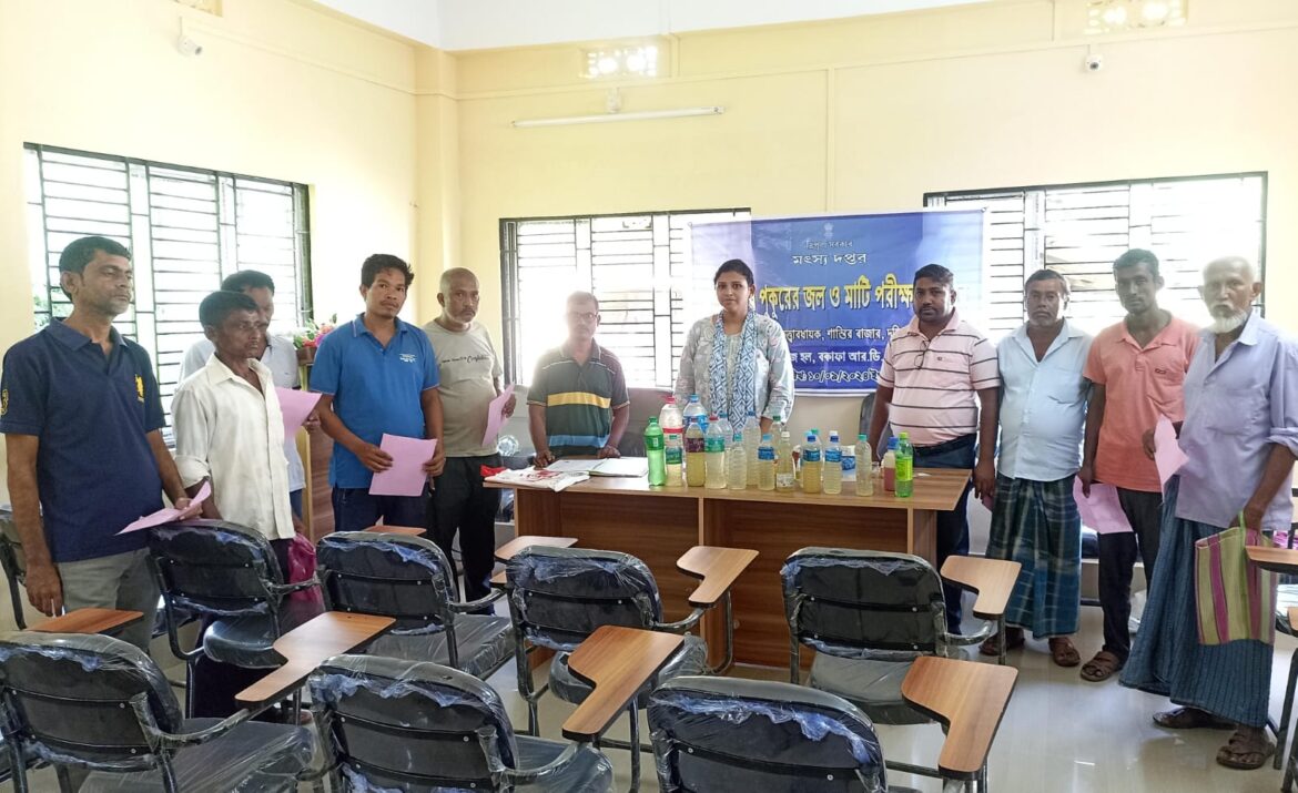 প্রতিনিধি শান্তিরবাজার :শান্তির বাজার মৎস্য তত্ত্বাবধায়কের উদ্যোগে আজ বোকাফা ব্লকের মৎস্য জ্ঞান অর্জন কেন্দ্রে একটি জল ও মাটির পরীক্ষা শিবির করা হয়। এতে ৩৫ জন মৎস্য চাষী উনাদের জলাশয়ের জল ও মাটি নিয়ে আসেন পরীক্ষা করার জন্য। মৎস্য দপ্তরের আধিকারিক শ্রীমতি মৃন্ময়ী দত্ত জানান বন্যায় শান্তিরবাজার মহাকুমার প্রায় ৭৫ শতাংশ জলাশয় ক্ষতিগ্রস্ত হয়েছে। এই কারণে বর্তমানে জলাশয়ের জল ও মাটির পরীক্ষা করা অত্যন্ত প্রয়োজন। বন্যায় বাইরের জল ঢোকার ফলে জলাশয়ের জল গুলি দূষিত হয়ে গেছে। এই জল ও মাটি পরীক্ষার মাধ্যমে মৎস্য চাষীদেরকে প্রয়োজনীয় উপদেশ দেওয়া হচ্ছে যাতে করে জলের গুণগত মান বজায় থাকে। তিনি আরো জানান এই ধরনের শিবির ইতিমধ্যেই বকাফা ব্লকের বিভিন্ন জায়গায় সংঘটিত করা হচ্ছে এবং এটি দপ্তরের বার্ষিক পরিকল্পনার অঙ্গ। আজকের শিবিরে এছাড়াও উপস্থিত ছিলেন মৎস্য দপ্তরের অফিসার অজয় দেবনাথ সহ অন্যান্য। মৎস্য চাষীদের সঙ্গে কথা বলে জানা গেছে তারাও মৎস্য দপ্তরের এই ধরনের উদ্যোগের ফলে ভীষণ খুশি। এই ধরনের পরীক্ষার ফলে পুকুরে মাছের রোগ এবং অন্যান্য সমস্যার প্রতিকার করা সম্ভব এবং এর জন্য উনারা মৎস্য দপ্তরকে ধন্যবাদ জানিয়েছেন।