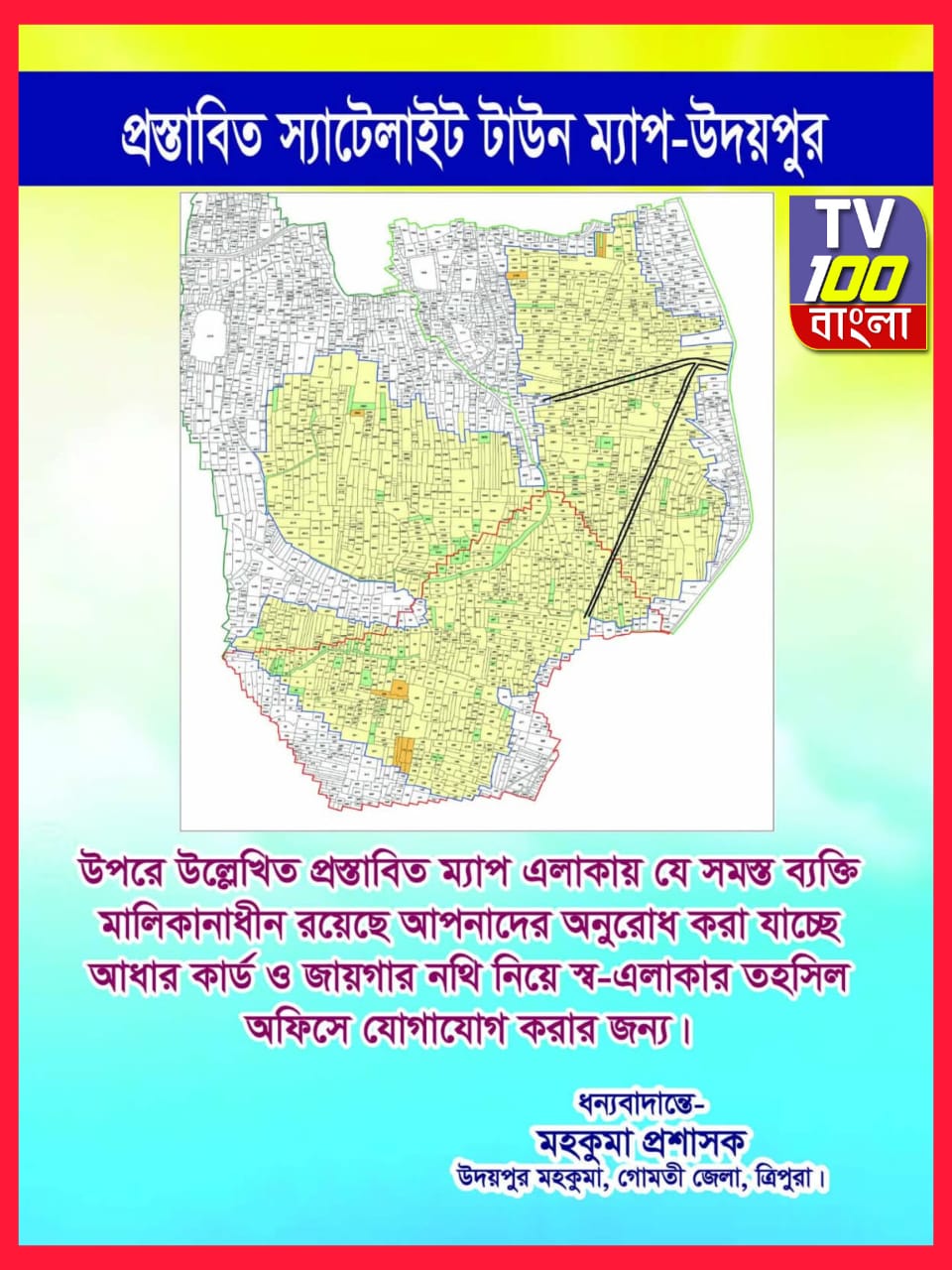 বিজ্ঞাপন : উপরে উল্লেখিত প্রস্তাবিত ম্যাপ এলাকায় যে সমস্ত ব্যক্তি মালিকানাধীন রয়েছে আপনাদের অনুরোধ করা যাচ্ছে , আধার কার্ড ও জায়গার নথি নিয়ে স্ব- এলাকার তহসিল অফিসে যোগাযোগ করার জন্য । ধন্যবাদান্তে