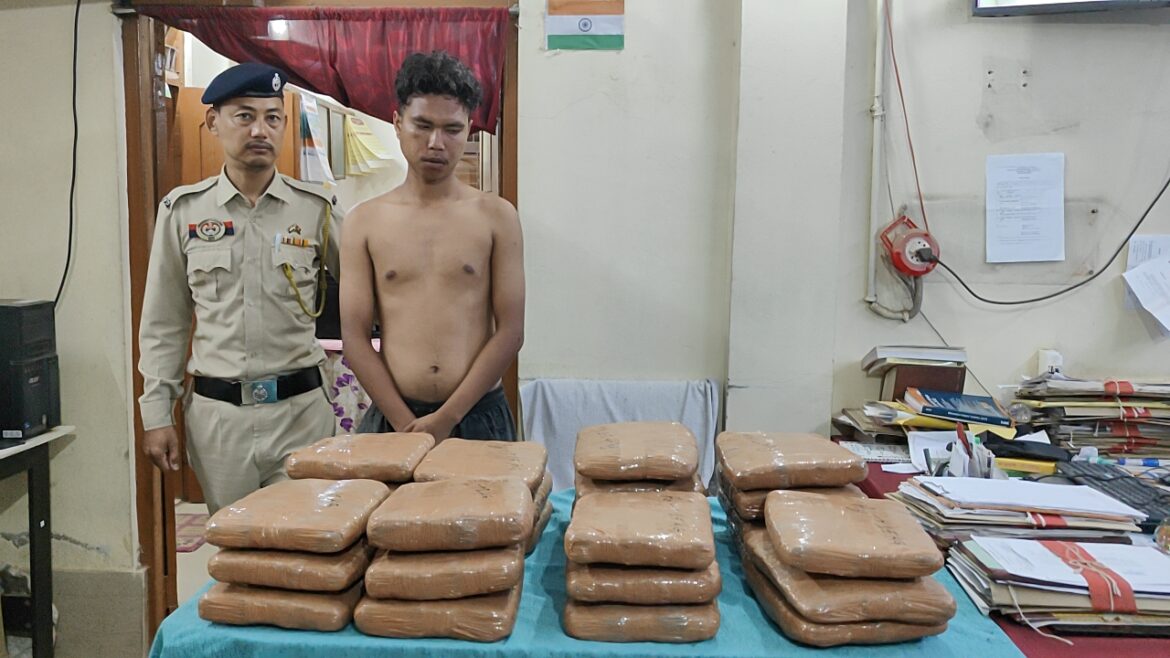 প্রতিনিধি। তেলিয়ামুড়া।। প্রায় প্রতিনিয়ত রাজ্যের বিভিন্ন রেল স্টেশন গুলো ব্যবহার করে গাঁজাসহ অবৈধ নেশা সামগ্রী পাচারের ঘটনাগুলো সামনে আসছে। একই রকম ভাবে আজ গোপন খবরের ভিত্তিতে তেলিয়ামুড়া রেলস্টেশন চত্বরে অভিযান সংঘটিত করে অভিনব কায়দায় গাজা পাঁচার কান্ডের সাথে জড়িত এক জনজাতি যুবককে গ্রেফতার করা হয় এবং প্রায় ৫০ কেজি শুকনা গাজা বাজেয়াপ্ত করে পুলিশ। ঘটনার বিবরণে প্রকাশ পুলিশ যখন তেলিয়ামুড়া রেলস্টেশনে দেওঘর এক্সপ্রেস আসার আগেই এমবুস করে বসে থাকে ঠিক তখনই কেতার দেববর্মা (যার বাড়ি তেলিয়ামুড়া থানার অন্তর্গত দাশুচন্দ্র পাড়া) সহ আরো বেশ কয়েকজন যুবক রেলস্টেশন সংলগ্ন ধানক্ষেত দিয়ে দুইটা ব্যাগ নিয়ে আসছিল। পুলিশের উপস্থিতি টের পেয়ে একটা ব্যাগ ফেলে, আরেকটা ব্যাগ নিয়ে যাওয়ার চেষ্টা করছিল তবে পুলিশ ক্ষীপ্রতার সাথেই ক্যাথারকে আটক করতে সক্ষম হয়। যদিও একটা সময় কেথার পুলিশকে আক্রমণ করে পালিয়ে যাওয়ার চেষ্টা করছিল। এরপর যথারীতি পুলিশ জঙ্গলে ফেলে রাখা ব্যাগ এবং ক্যাথার এর সাথে থাকা আরেকটা ব্যাগ তল্লাশি করে ২৫ টা প্যাকেটে থাকা মোট ৫০ কেজি গাঁজা উদ্ধার করতে সক্ষম হয়। এদিকে ধৃত যুবক দাবী করেছে কাঠালিয়া এলাকার জনৈক রাহুল দেববর্মা গাজা গুলো পাচারের জন্য তার কাছে গাড়ি করে দিয়ে গেছে এবং সংশ্লিষ্ট রেলে বিহারের জনৈক পাচারকারী রয়েছে যার কিনা টর্চ লাইট দিয়ে সিগন্যালের মাধ্যমে এই গাজা গুলো নিয়ে যাওয়ার কথা ছিল।