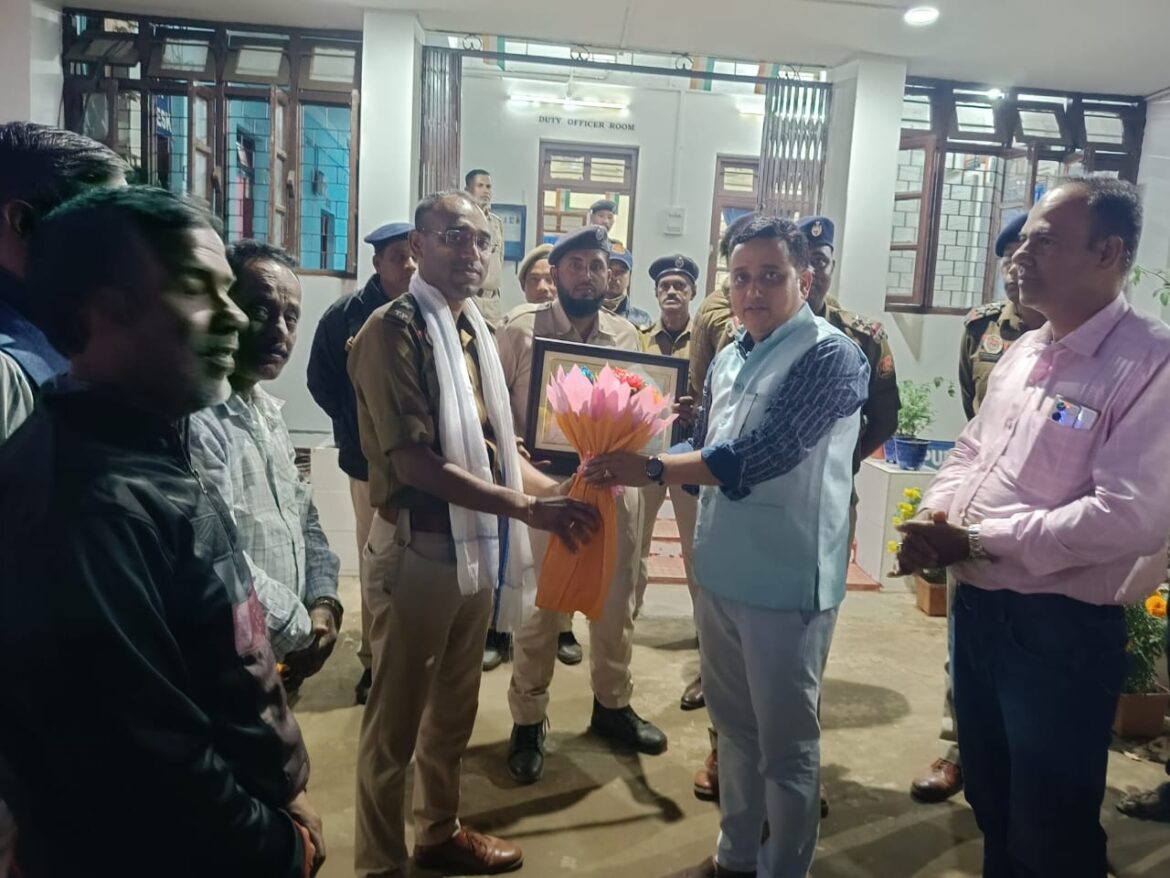 প্রতিনিধি, বিশালগড়, ১৭ জানুয়ারি ।। এ বছর রাজ্যের শ্রেষ্ঠ থানা হিসাবে পুরস্কার পায় সিপাহীজলা জেলার বিশ্রামগঞ্জ থানা। বৃহস্পতিবার রাজ্যের মুখ্যমন্ত্রী হাত থেকে পুরস্কার গ্রহণ করেছিলেন বিশ্রামগঞ্জ থানার ওসি সুবিমল দেবনাথ। শুক্রবার চড়িলাম মন্ডলের পক্ষ থেকে থানার ওসি সুবিমল দেবনাথকে সম্বর্ধনা জ্ঞাপন করা হয়। শুক্রবার চড়িলাম মণ্ডল সভাপতি তাপস দাস, সিপাহী জলা জেলা সহ-সভাপতি অমল দেবনাথ, মন্ডল কোষাধক্ষ্য সুমন দেবনাথ সহ চড়িলাম মন্ডলের এক প্রতিনিধি দল বিশ্রামগঞ্জ থানায় গিয়ে ওসি সুবিমল দেবনাথ কে উত্তরীয় এবং পুষ্পস্তবক সহ রাধাকৃষ্ণের এক ছবি দিয়ে সম্বর্ধনা জ্ঞাপন করেন। চড়িলাম মণ্ডল সভাপতি তাপস দাস বলেন আমাদের গর্বের বিষয় চড়িলাম মন্ডলের অধীন বিশ্রামগঞ্জ থানা রাজ্যের মধ্যে শ্রেষ্ঠ থানা হিসেবে পুরস্কার পেয়েছে। অন্যদিকে বিশ্রামগঞ্জ থানার ওসি সুবিল দেবনাথ বলেন আমাদের থানা জনগণকে সাথে নিয়ে এলাকায় অপরাধ দমনে কাজ করছে। তিনি ২০২২ সালে বিশ্রামগঞ্জ থানায় কর্মস্থলে যোগ দিয়েছিলেন। বর্তমানে অপরাধের মাত্রা কমেছে। সকলের সহযোগিতায় শান্তি শৃঙ্খলা বজায় রাখার পাশাপাশি অপরাধ দমনে কাজ করবেন বলে জানান তিনি।
